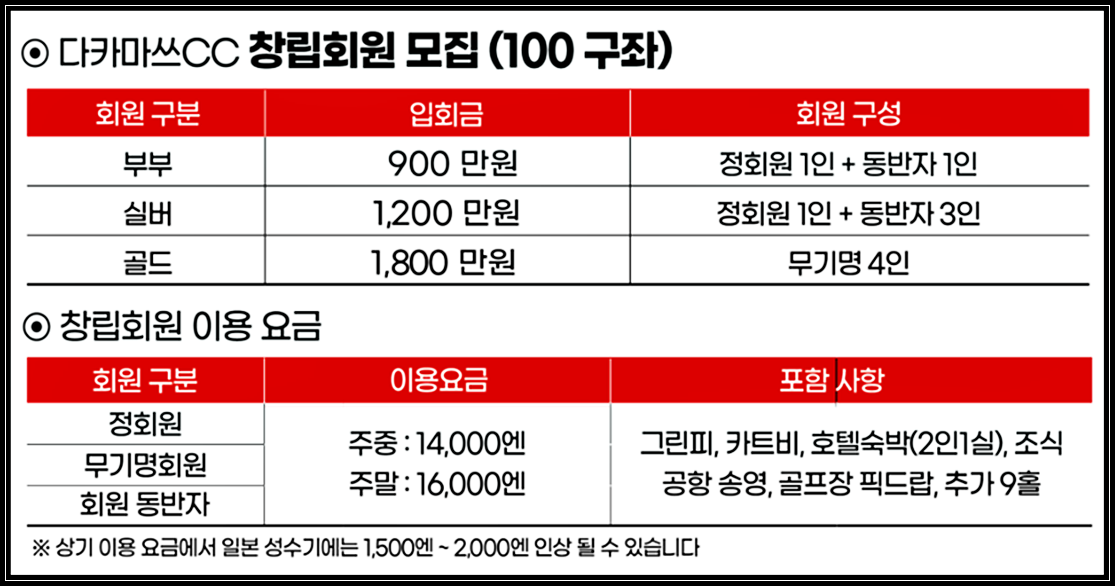 다카마쓰CC는 현재 창립회원 30구좌한정으로 회원을 모집하고 있으며,